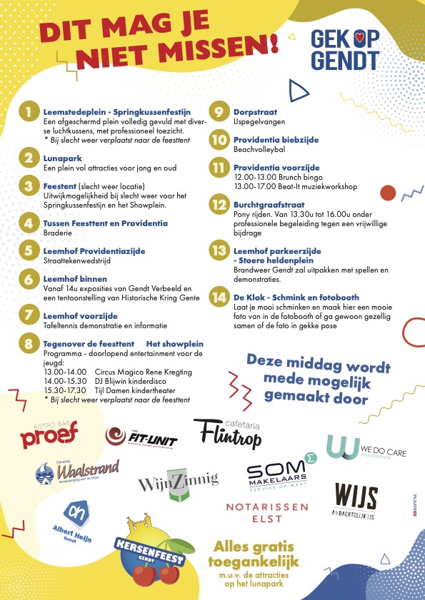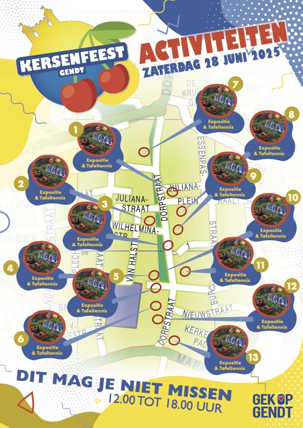 Van het straatfestival zal een plattegrond gemaakt worden, deze zal ruim vooraf h-a-h worden verspreid in geheel Lingewaard (18.000st.) en 10st A0 verspreid in het dorp. Hiermee kan men bekijken waar de diverse activiteiten plaats vinden. Op deze plattegrond komen 10 logo’s van bedrijven te staan.